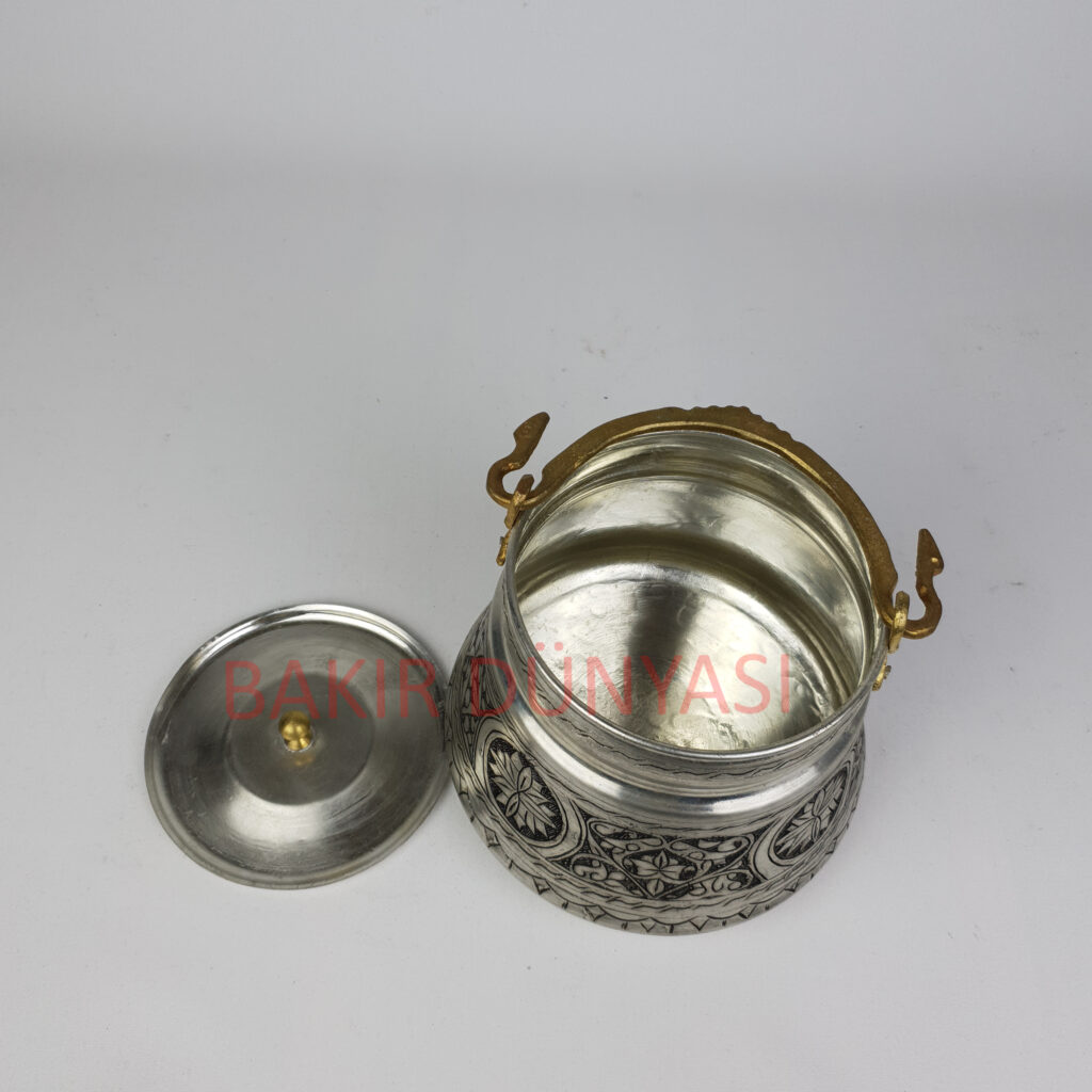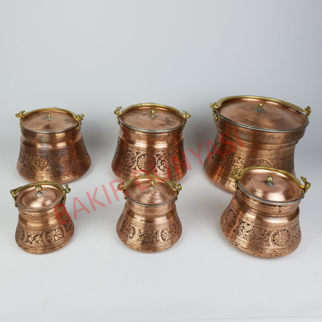 Ürünümüz tamamen el işçiliğiyle hazırlanmıştır. Dış kısmındaki işlemler kalem işçiliğidir. 1mm kalınlıkta bakırdan imal edilmiştir. Dışı parlak cilalıdır. İçi kalay
