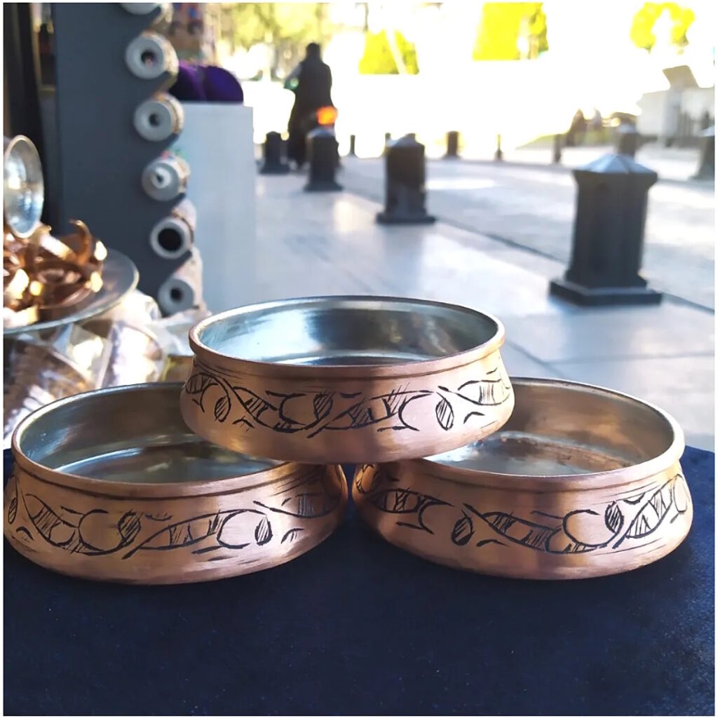 Ürünümüz tamamen el işçiliğiyle hazırlanmıştır. 0,70mm kalınlıkta pirinçten üretilmektedir. Dışındaki işlemeler dövme bakır işçiliğidir. Ayakları pirinç dökümdür. Amacına uygun kullanılabilecek