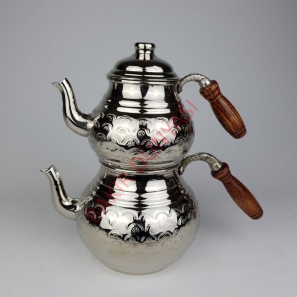 Ürünümüz tamamen el işçiliğiyle hazırlanmıştır. 0,60mm kalınlıkta bakırdan imal edilmiştir. Çaydanlığınıza uygun bakır ve beyaz (nikel) renk üretilmektedir. 22cm –