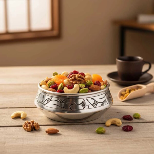 Ürünümüz tamamen el işçiliğiyle hazırlanmıştır. 0,80mm kalınlıkta bakırdan imal edilmiştir. Dış kısımdaki işlemeler bakır ağır kalem işçiliğidir. Çerez, şeker vb