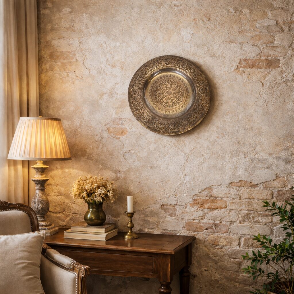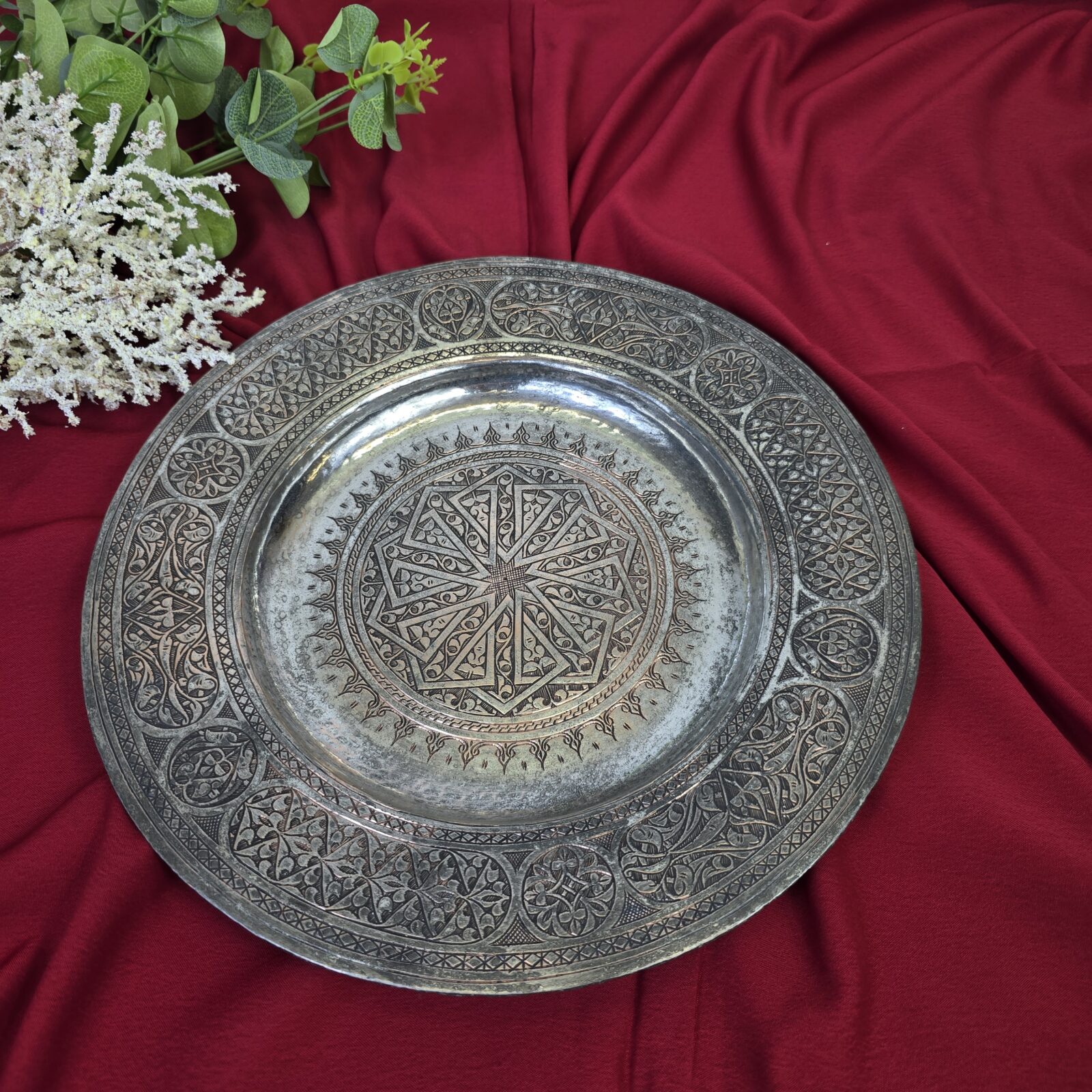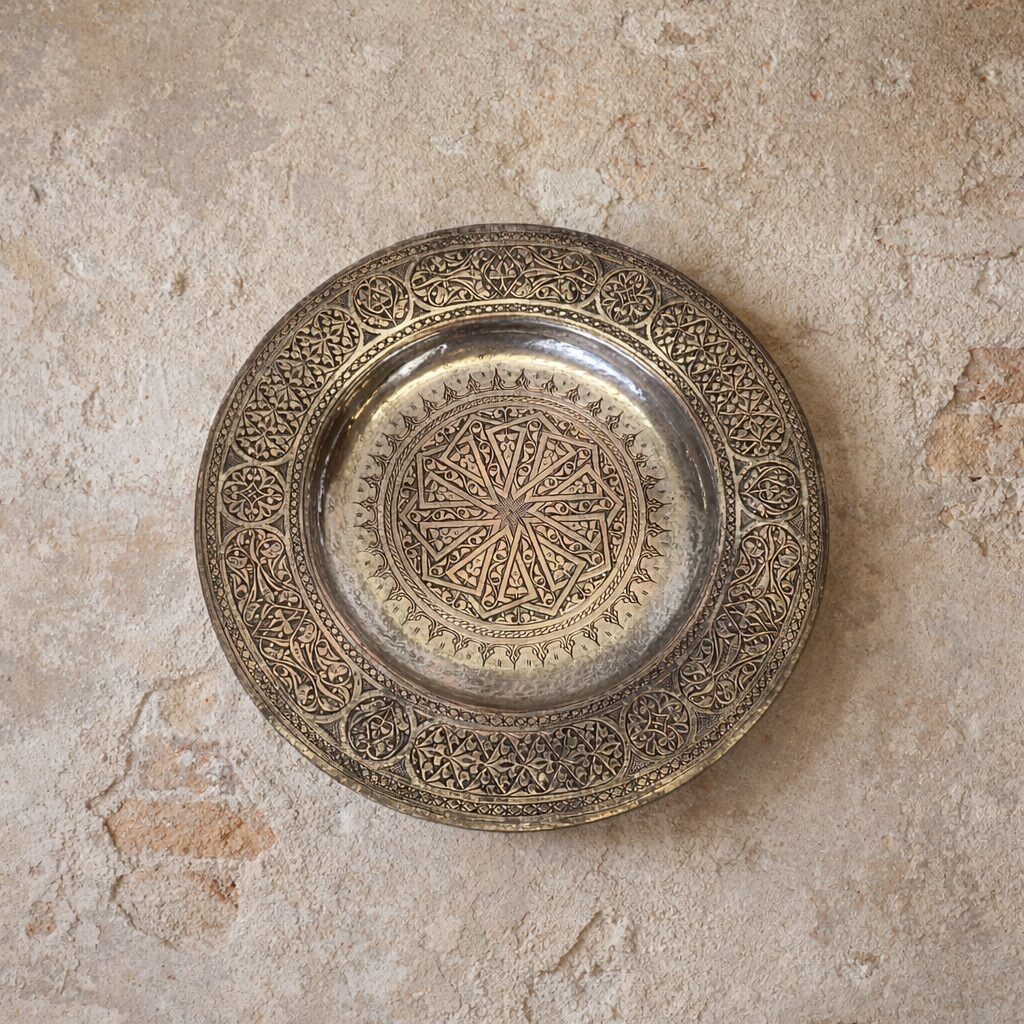 Eski Anadolu Kalem İşlemeli Bakır Tablo – 29.5cm