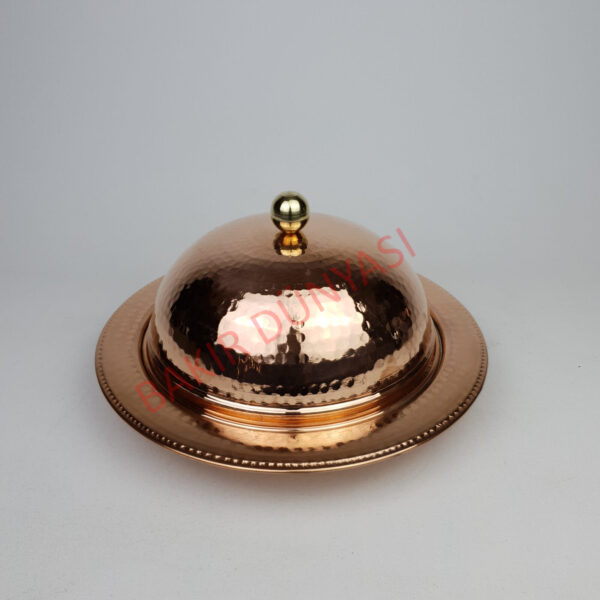 Ürünümüz tamamen el işçiliğiyle hazırlanmıştır. Tabak kısmı 0,80mm kalınlıkta bakırdan üretilmektedir. Kapak kısmı özel üfleme cam üretilmiştir. Şekerlik, çerezlik vb